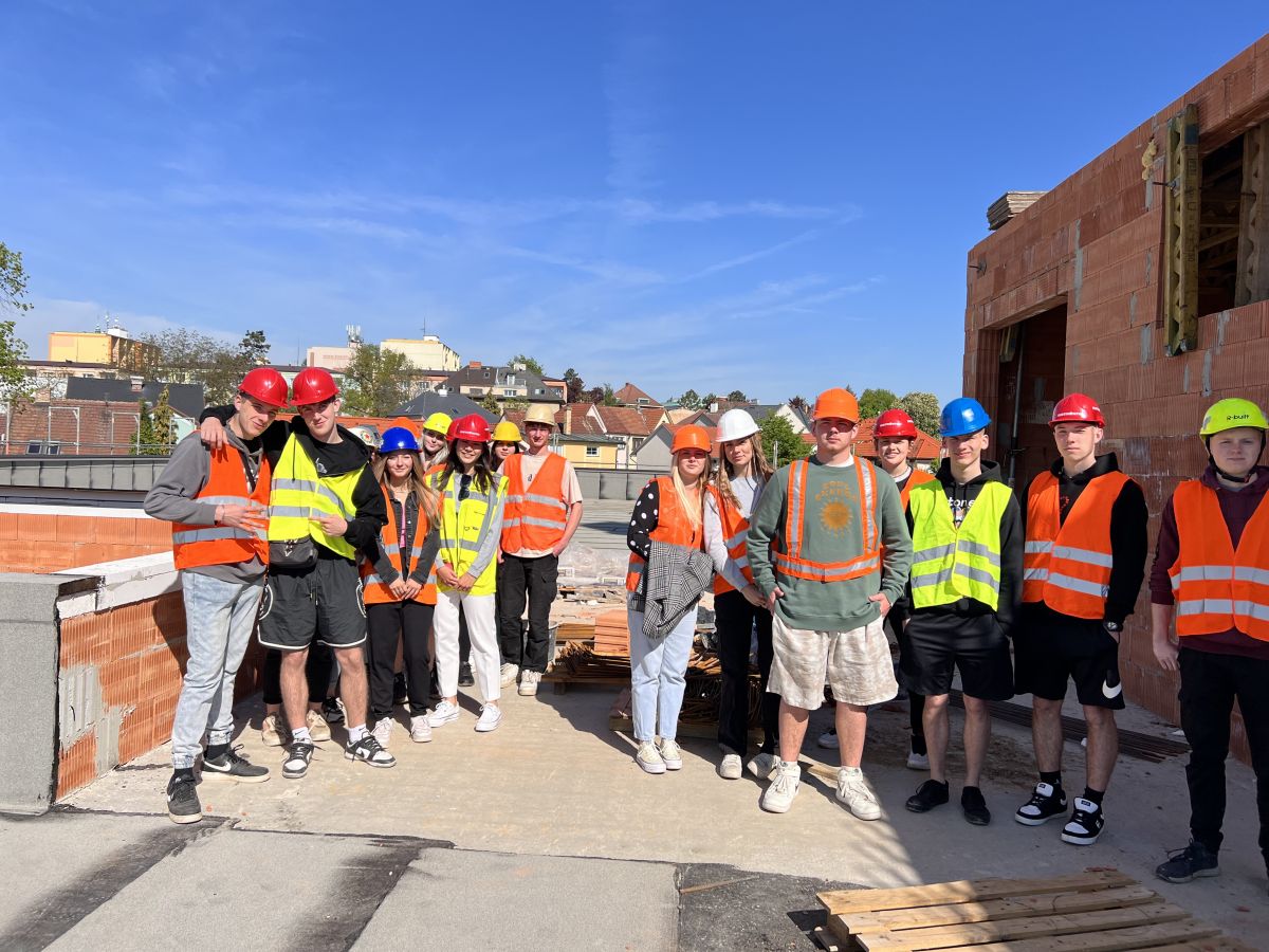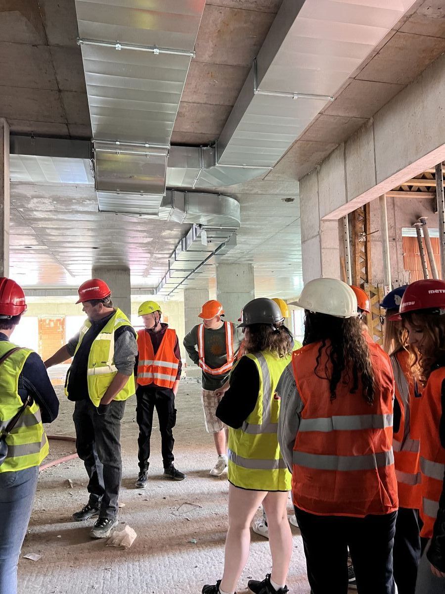 Exkurze 3. ročníku na stavbě nemocnice.