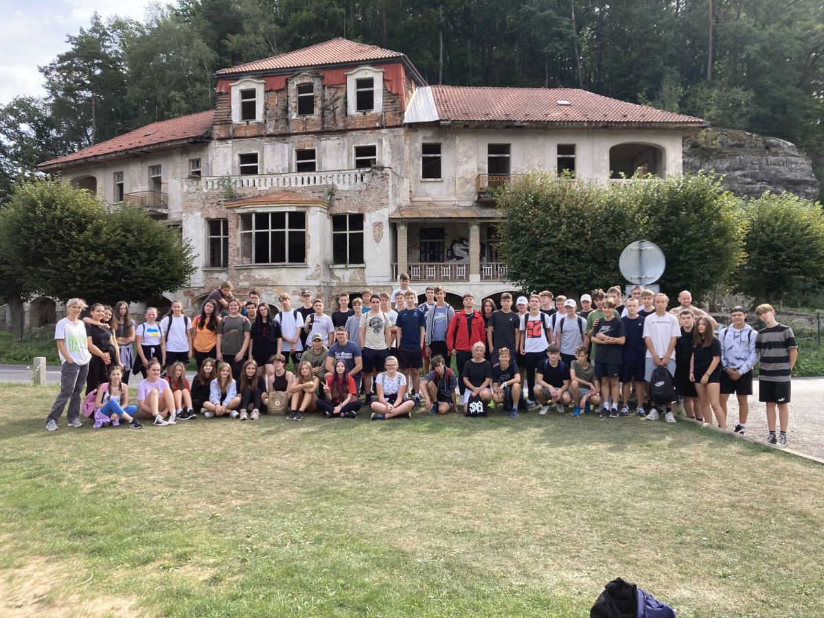 První den v září se naší škole narodily dvě nové třídy. Sotva se stačili noví středoškoláci rozhlédnout v novém prostředí, už je čekala první společná akce, třídenní adaptační výjezd do tábořiště ve Lhotce u Mělníka. Cesta autobusem trvala jen chvilku, ale i tak se nováčci trochu oťukávali a nervozita postupně opadala. Volný čas k seznamování měli naši „prváci“ i po ubytování, nechyběl prostor ke sportování na místním hřišti, takže se velmi brzy první nadšenci zabavili fotbalem, či basketem. Po obědě následovaly seznamovací hry v režii Aleny Holečkové a od 16 hodin pak branný závod družstev, ke kterému se sjeli i další pedagogové s připravenými aktivitami na stanovištích. Namátkou několik z nich – střelba ze vzduchovky, slaňování, kvíz ze zdravovědy, architektury, angličtiny aj. Na vítězná družstva čekala sladká prémie z rukou paní ředitelky. Večer následovala ještě další týmová hra a poté si každý mohl opéct buřta a posedět u táborového ohně.