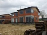 Domy byly v různých fázích výstavby, takže toho k vidění bylo mnoho: hrubá stavba, monolitické stropy a schodiště, rozvody vody, kanalizace, elektroinstalace, podlahové vytápění, detaily při osazování oken, lešení, terénní úpravy, dokončená fasáda.