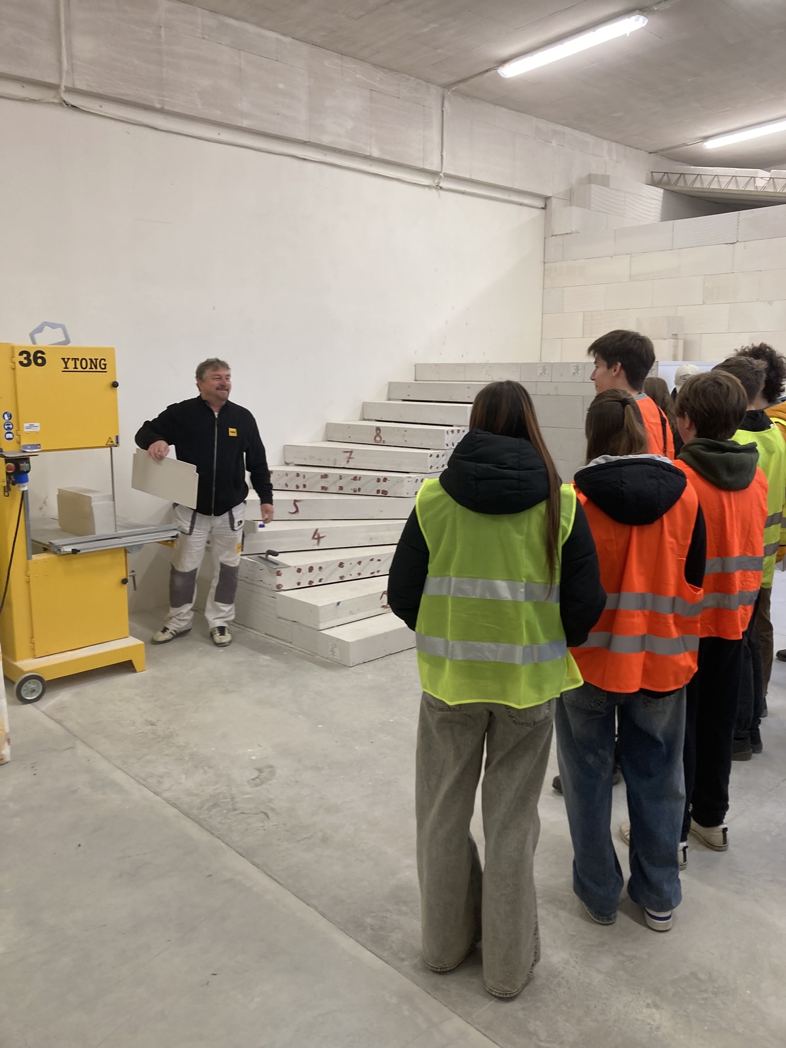 Začátkem listopadu začínají žáci druhých ročníků v rámci předmětu konstrukční cvičení rýsovat stropní konstrukce. A to je ten správný čas propojit teorii s realitou. Nedaleký závod v Horních Počaplech na výrobu stavebního systému z pórobetonu YTONG nezklamal. Žáci byli proškoleni teoreticky, prošli částí výroby a nakonec viděli praktické ukázky konstrukce stropu, schodiště a stěn se všemi detaily. Exkurze byla přínosná a žákům se líbila.