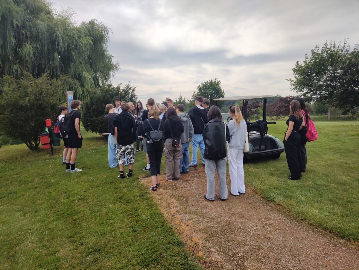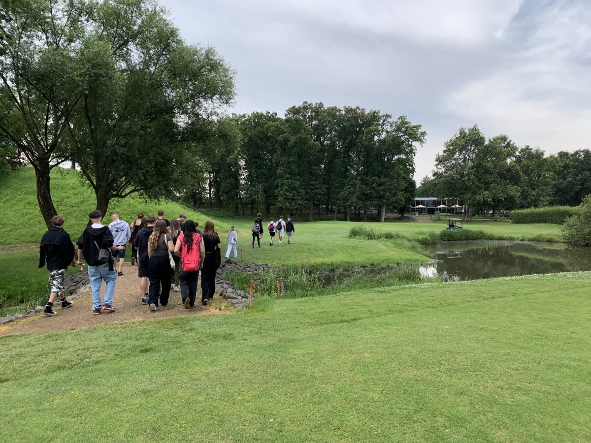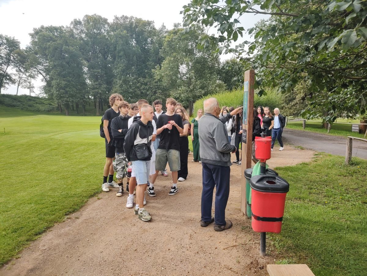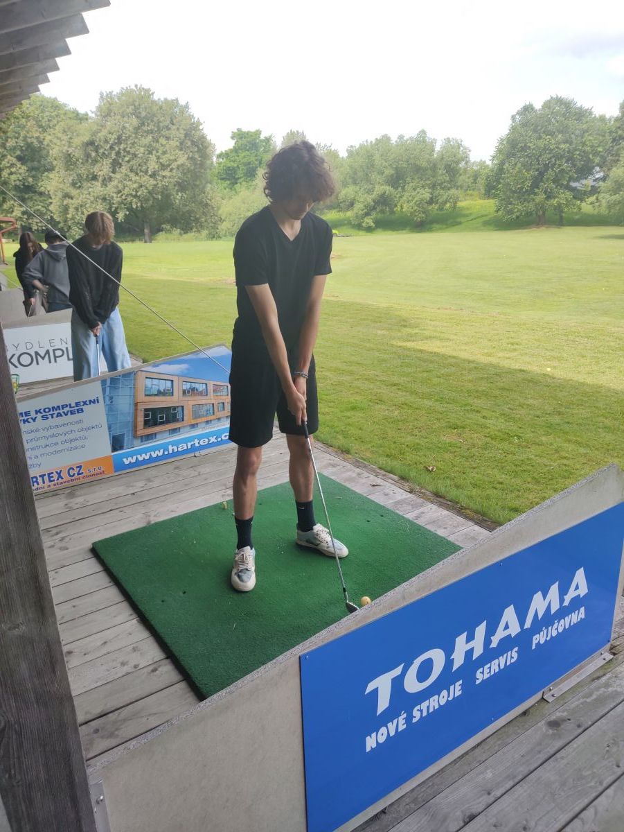 První zastávkou byl golfový areál Kotlina kousek od hradeb Terezínské pevnosti a také u soutoku Ohře s Labem. Devítijamkové hřiště vzniklo po velké vodě v roce 2002, později byla realizována stavba klubovny – ocelový skelet, skleněný plášť a zelená pultová střecha. Dozvěděli jsme se zajímavosti z historie budování areálu, ale také jsme měli možnost projít se po části hřiště a pozorovat trénink profesionálů. Pak všichni dostali šanci zkusit si několik odpalů na tréninkové louce.