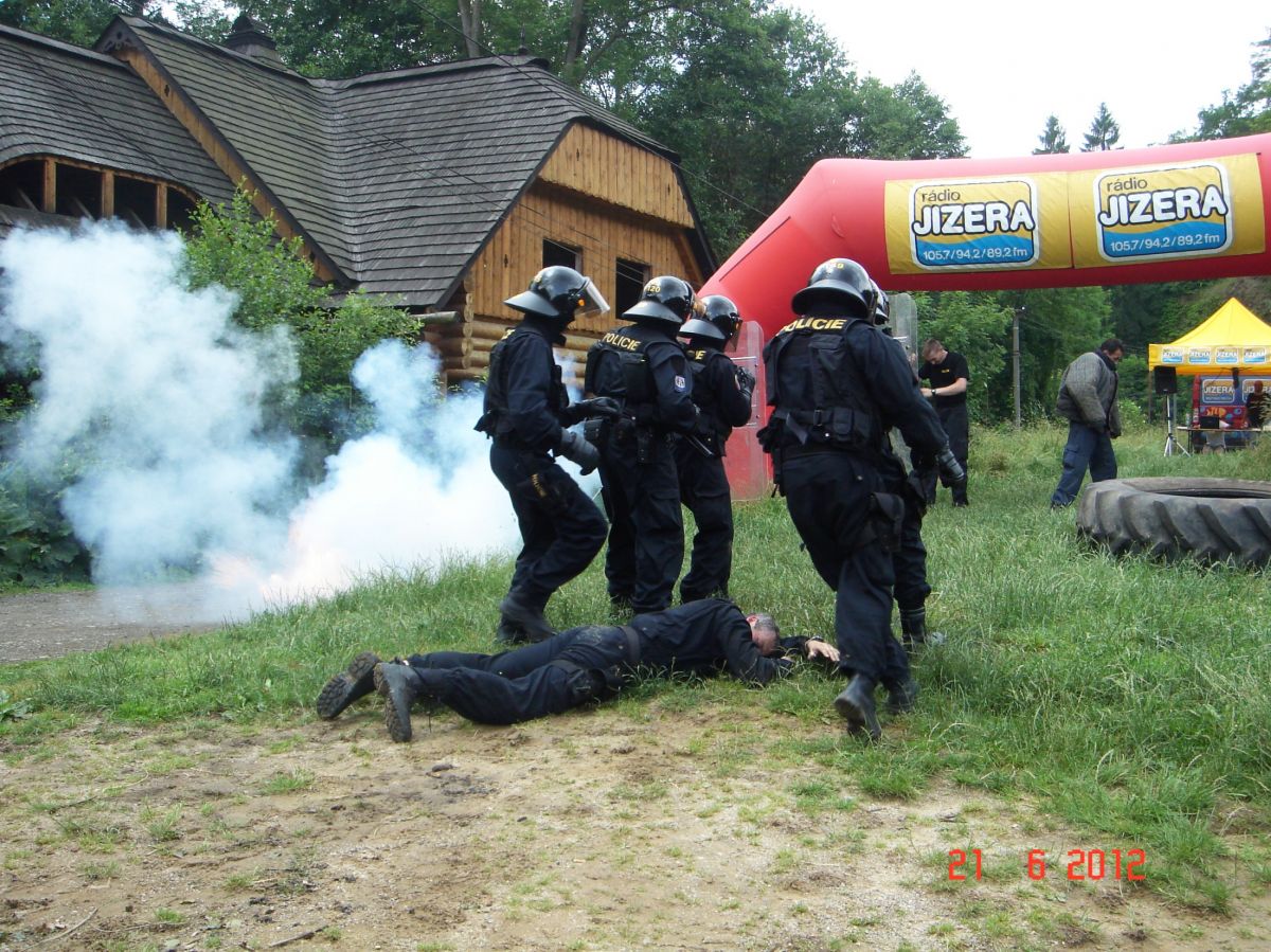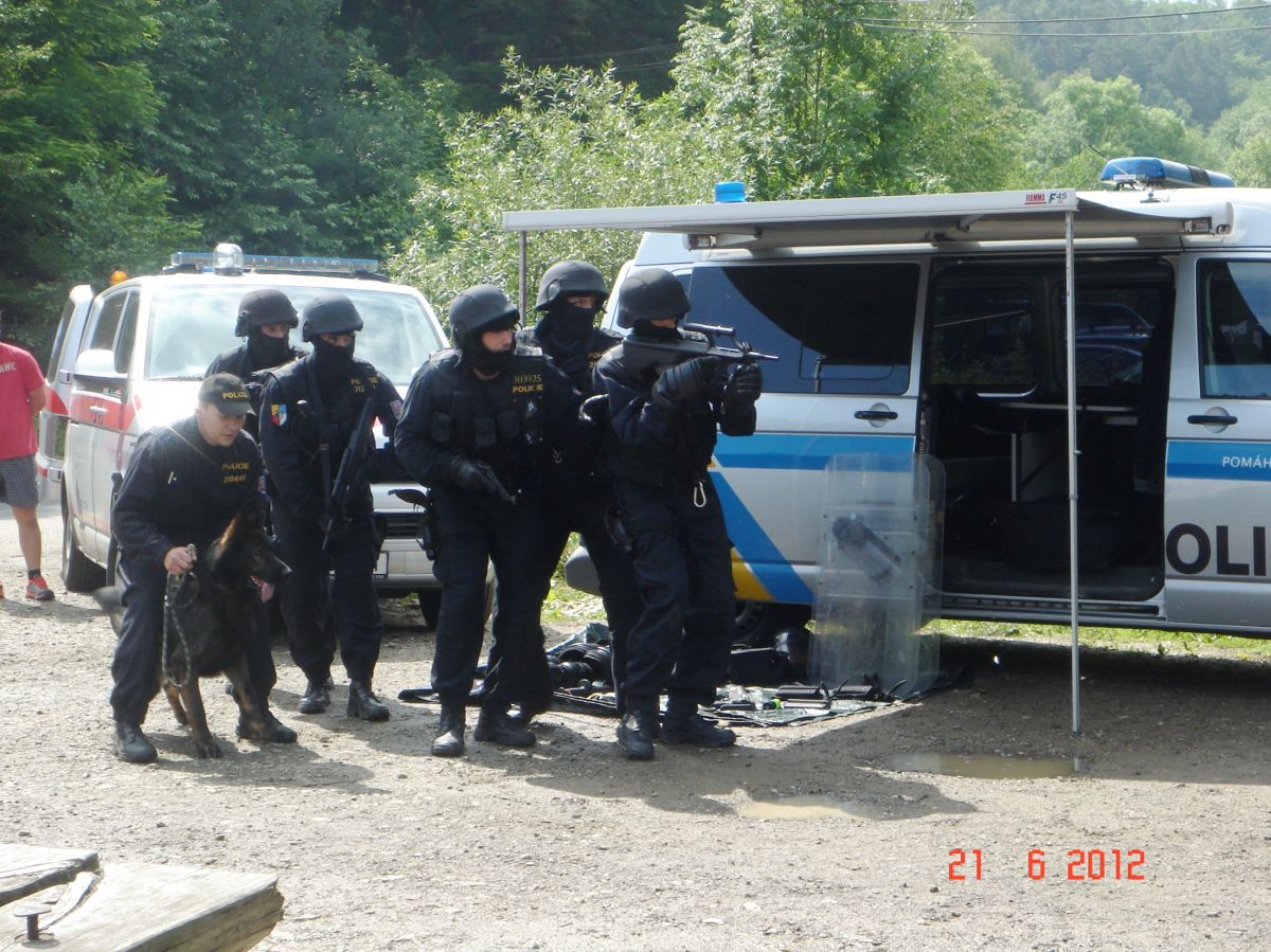 Viděli jsme ukázky ze sebeobrany, práci policistů s policejními psi, zásahovou jednotku v akci, první pomoci a sledovali jsme družstva policistů, která plnila na 25 km trati náročné úkoly.