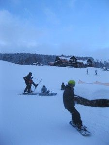 V pátek přišla nepříjemná změna. Trochu se nám zkazilo počasí. Zapršelo a lyžování bylo docela těžké a nepříjemné. Museli jsme jezdit mnohem opatrněji a občas se i zahřát teplým čajem.