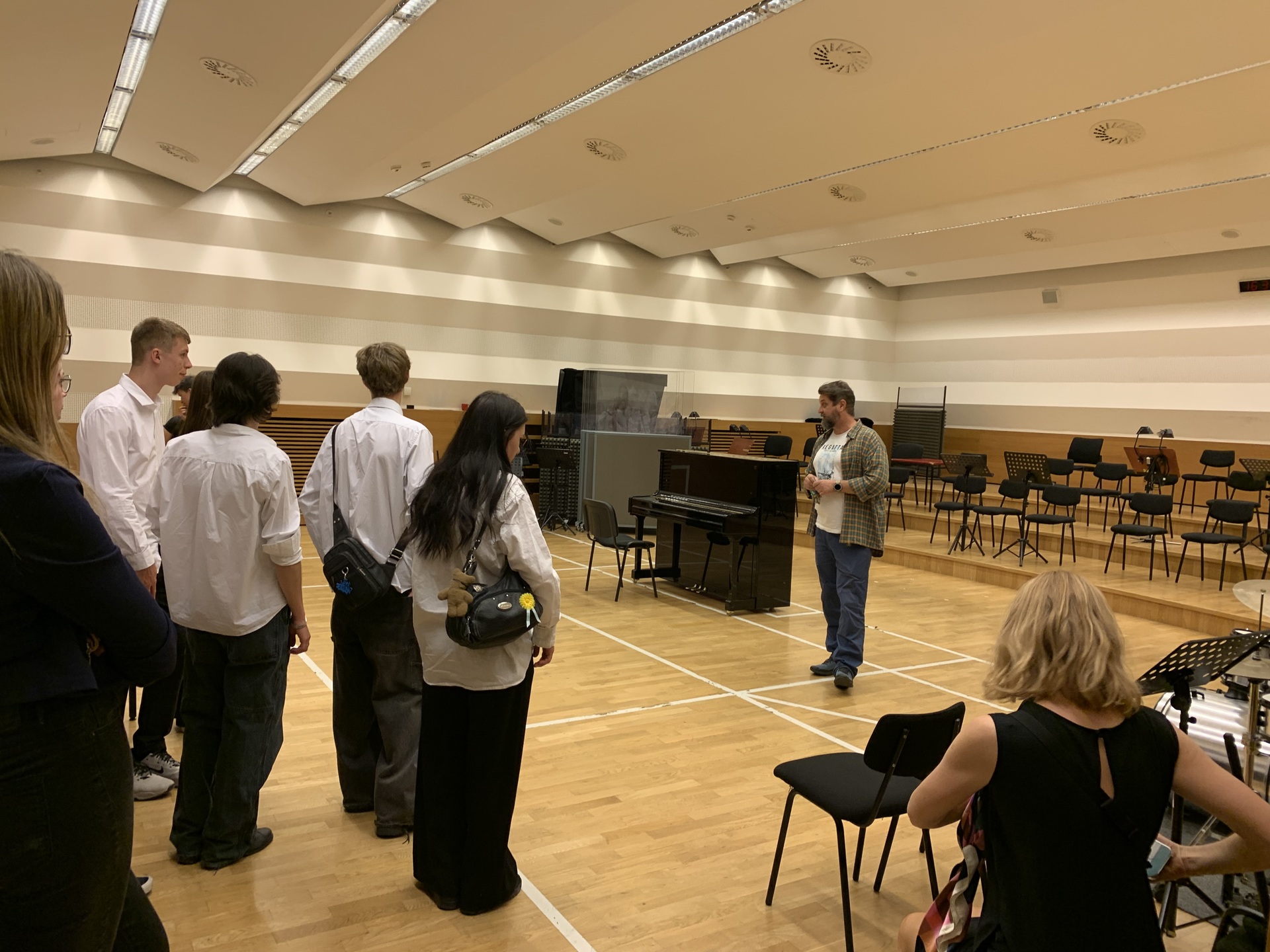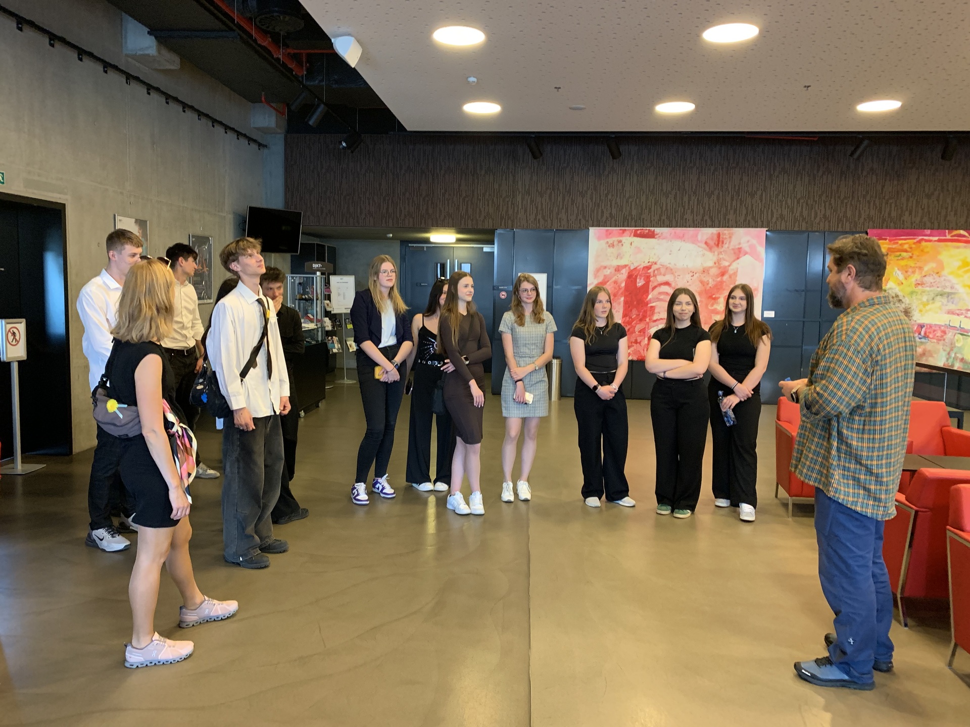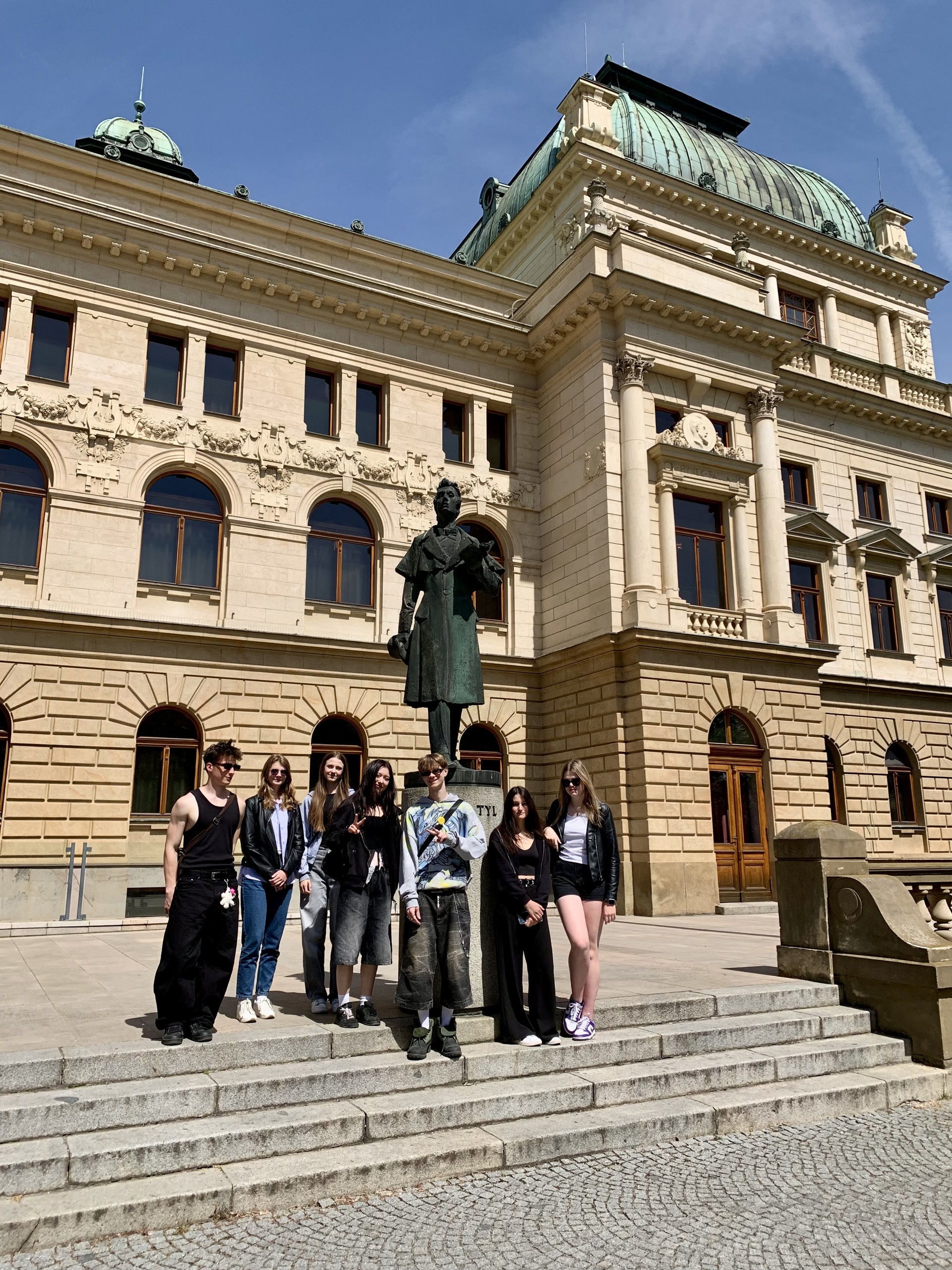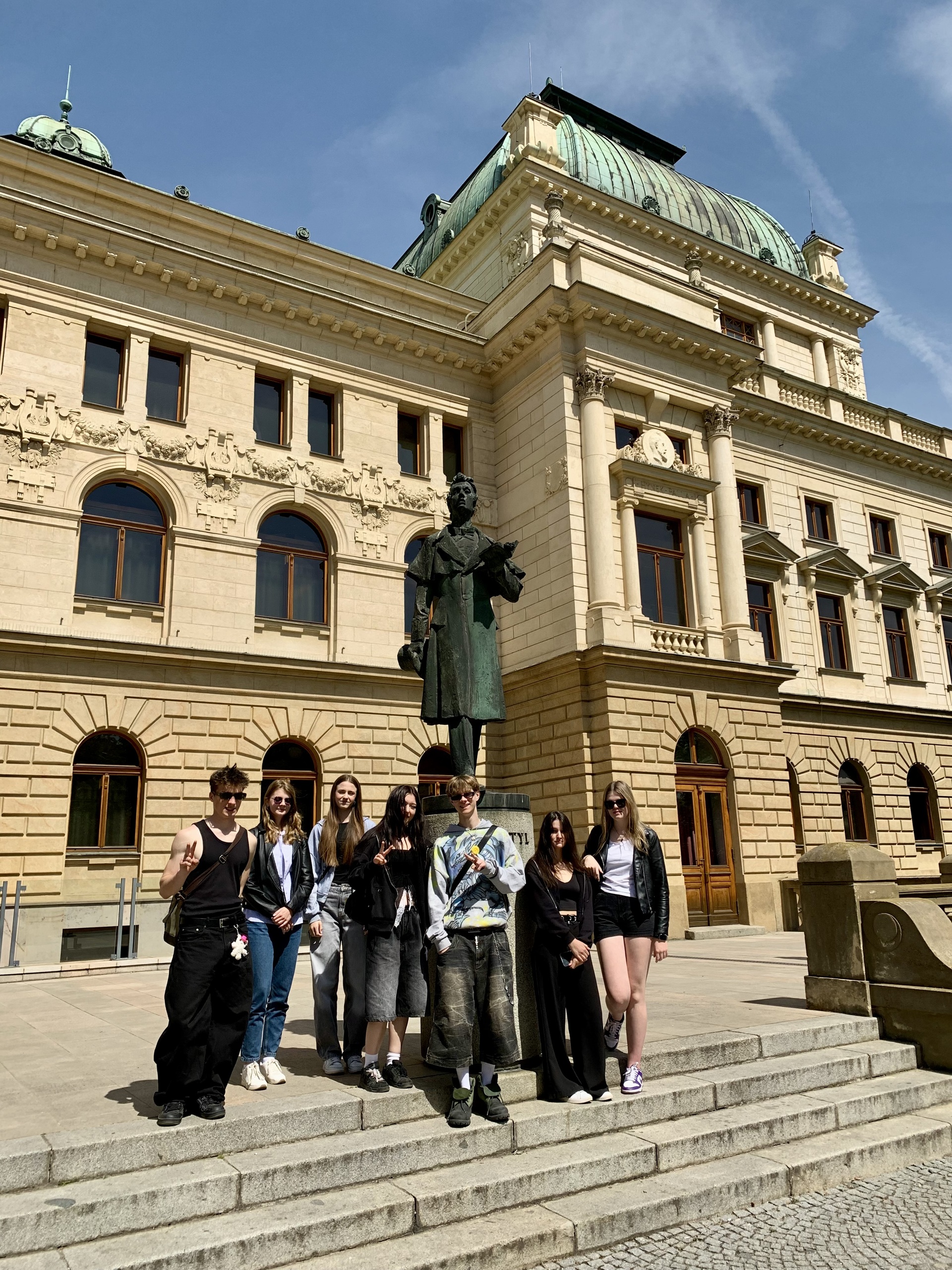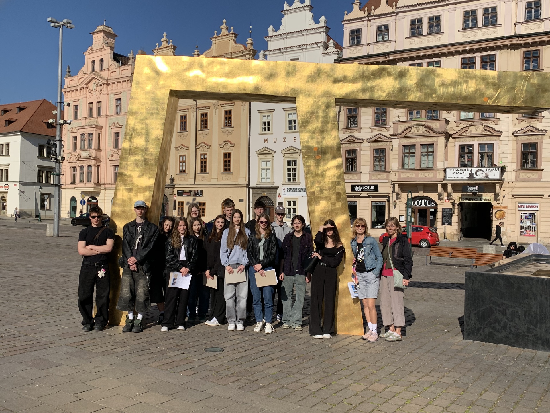 Mezi další aktivity patřilo například skicování zajímavých staveb, či komentovaná prohlídka historického centra, jejímiž průvodci byli sami studenti. Vyšplhali jsme také na nejvyšší kostelní věž v České republice, věž katedrály sv. Bartoloměje, odkud jsme viděli i naše další zastavení: radnici, Velkou synagogu, Tylovo divadlo, Masné krámy (sídlo Západočeské galerie), Černou věž i krásné měšťanské domy a moderní zlaté kašny, které symbolizují figury ze znaku města – chrtici, anděla a velblouda.