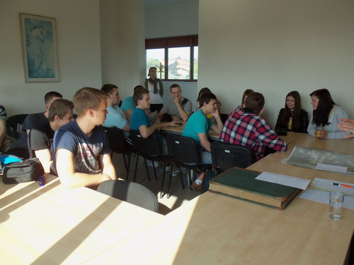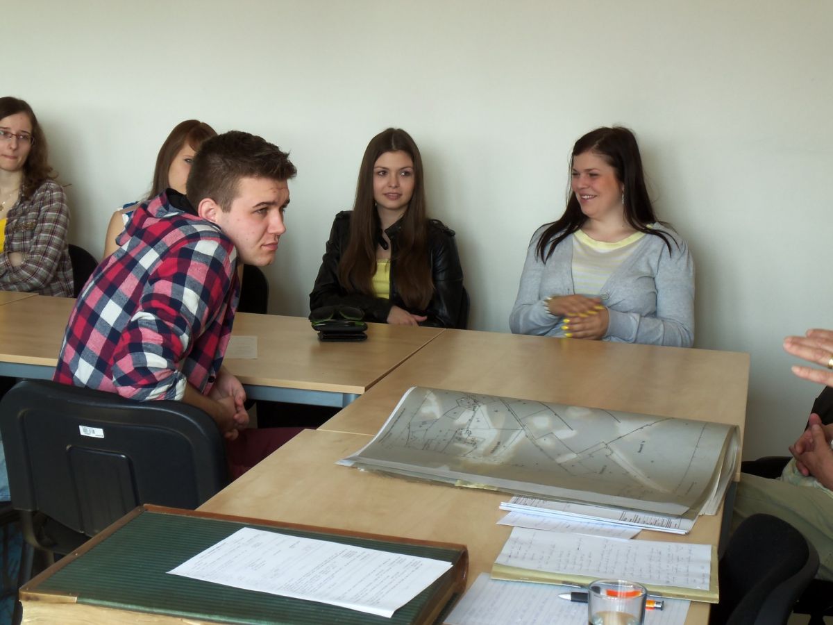 V úvodu přednášky se studenti dozvěděli zajímavosti z historie mapování území, měli možnost nahlédnout do pozemkové knihy. Následovalo poutavé povídání o vkladovém řízení, činnosti správního řízení, geometrických plánech, digitalizaci map, určování výměr a pozemkových úprav. V průběhu povídání si studenti prohlíželi různé formuláře a staré i nové mapy. Ve škole následovala práce na počítačích, kde si každý student vyhledal katastrální mapu, polohové a výškové pole a provedl návrh na vklad. Návštěva se uskutečnila v rámci operačního programu OP VK.