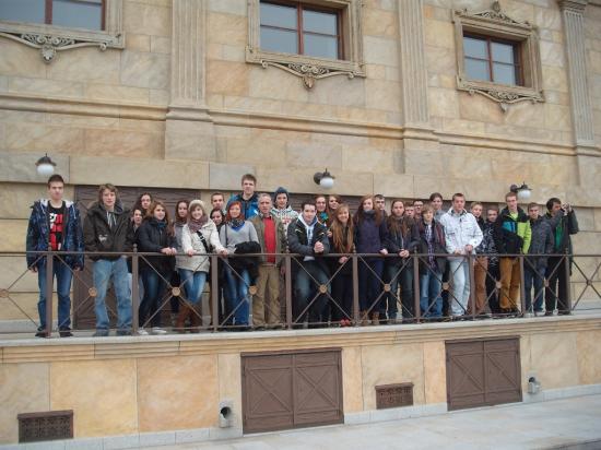 a jako bonus si 2.B přidala Muzeum čokolády. Víte jak vypadalo původní Národní divadlo? Tušíte kolik zlata se spotřebovalo při jeho první velké rekonstrukci? Byla provedena téměř po 100 letech! Kéž by všechny současné stavby měly takovou životnost… Znáte umělce, kteří se podíleli na výzdobě naší Zlaté kapličky? Víte, proč prezidentská lóže není vůbec místo VIP? Kolik se vejde diváků do dnešního hlediště? Na všechny tyto otázky a ještě mnoho dalších jsme při naší komentované prohlídce dostali odpovědi. Prošli jsme budovu od základních kamenů až po střechu, odkud je mimochodem velmi pěkný výhled na Pražský hrad. Až potud se exkurze účastnily třídy 1.A, 2.A a 2.B. Další program byl už po jednotlivých třídách. Předvánoční čas jsme si s 2.B zpříjemnili procházkou na Václavské náměstí, ke Stavovskému divadlu, na Staroměstské náměstí (krásně nám vyšel i polední Orloj) a po krátké prohlídce vánočních trhů jsme ještě navštívili Choco-Story, tedy Muzeum čokolády v Celetné ulici. Slyšeli jsme vyprávění o indiánských tradicích a původu kakaa, viděli jsme výrobu čokoládových pralinek a mohli jsme i voňavou lahůdku ochutnat. Myslím, že to byl krásný začátek dlouhých vánočních prázdnin.