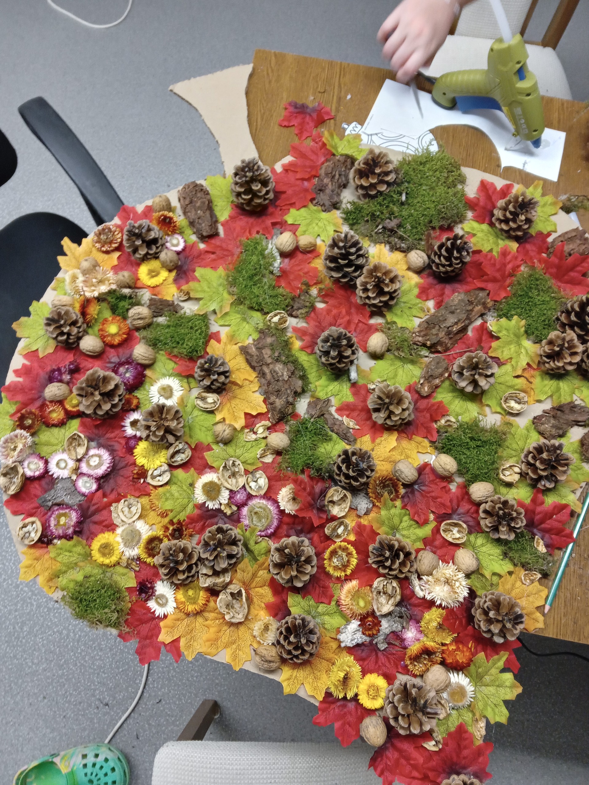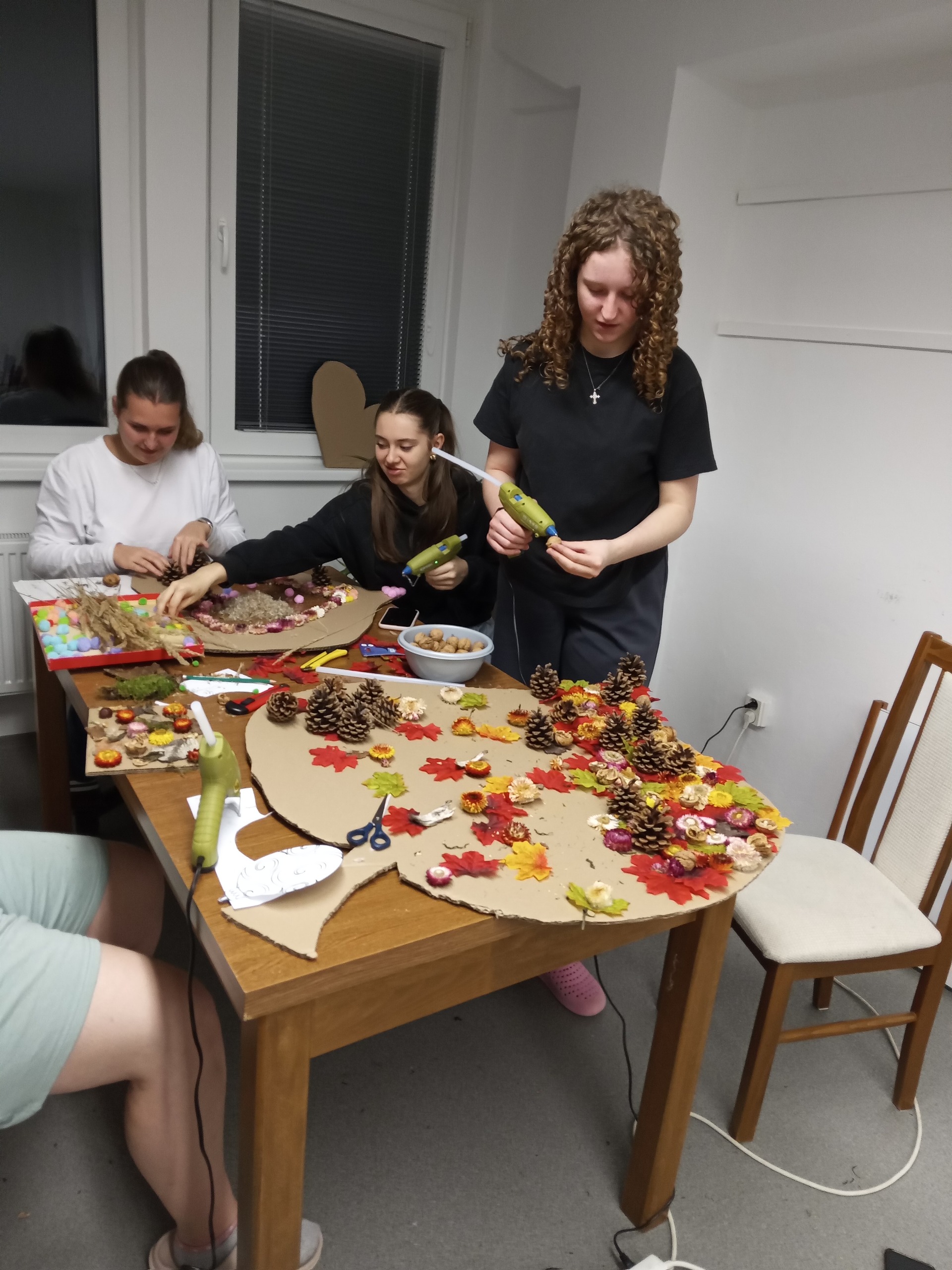 Volný čas jsme v průběhu celého listopadu věnovali tvoření netradičních obrazů z barevných přírodních materiálů. Společně jsme tak strávili mnoho hodin touto neobvyklou činností. Užili jsme si při ní spoustu zábavy a naučili jsme se něco nového. Obrazy nám po dokončení krásně rozzářily chodby domova mládeže a hezky nám zpříjemňují každodenní život.
