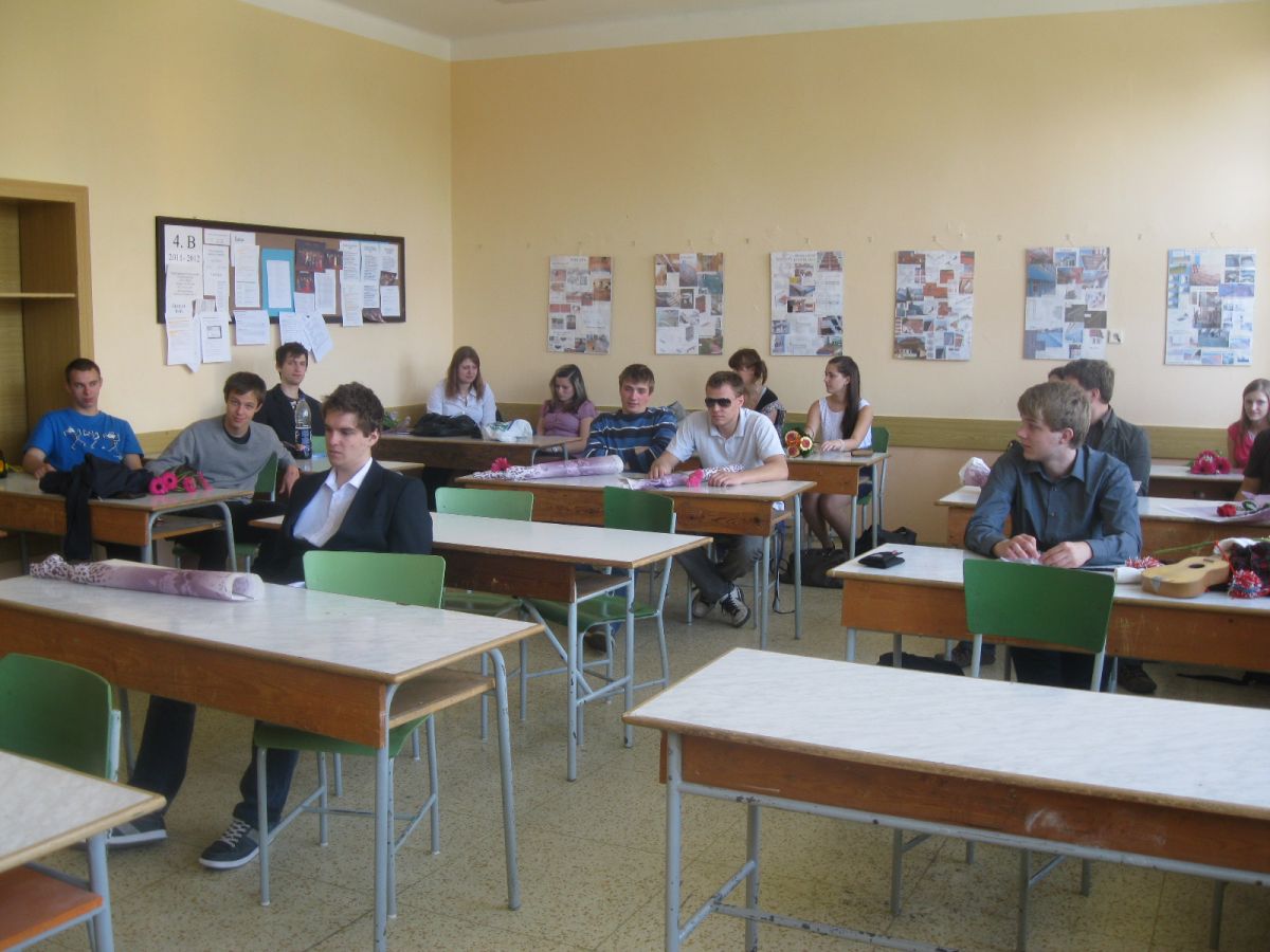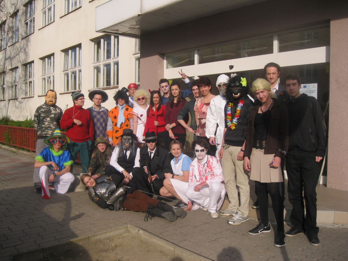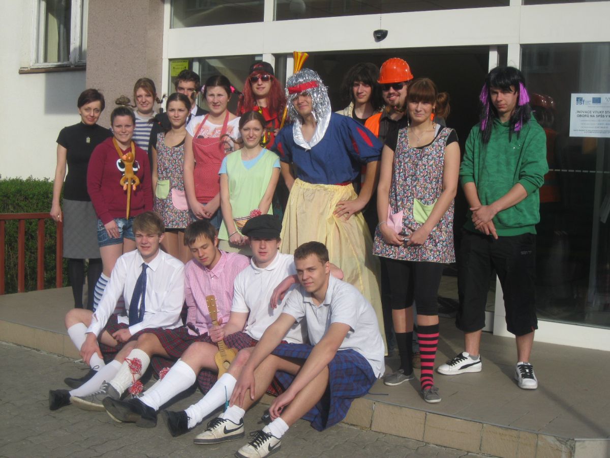 26.4.2012 krátce po sedmé hodině ranní se začíná plnit prostor před vstupem do školy roztodivnými figurkami. Některé lze identifikovat, pro jiné marně hledáme pojmenování. Atmosféru dotváří libé i nelibé zvuky různých hudebních nástrojů. Neprobíhá tady žádné filmové natáčení, jen studenti tříd 4.A a 4.B oznamují, že dnešním dnem skutečně opouští školní lavice. Čeká je už jen rozloučit se se svými mladšími spolužáky, vyučujícími a zaměstnanci školy a slavnostně převzít poslední vysvědčení na střední škole.