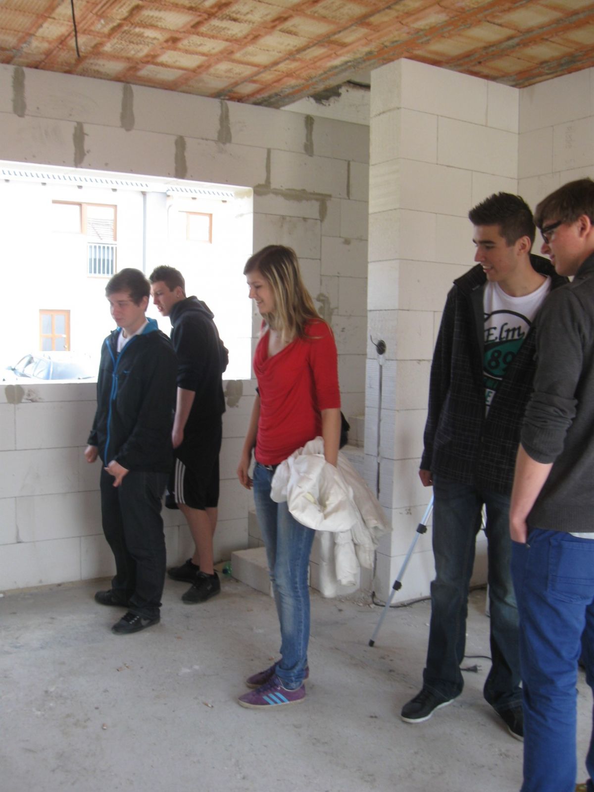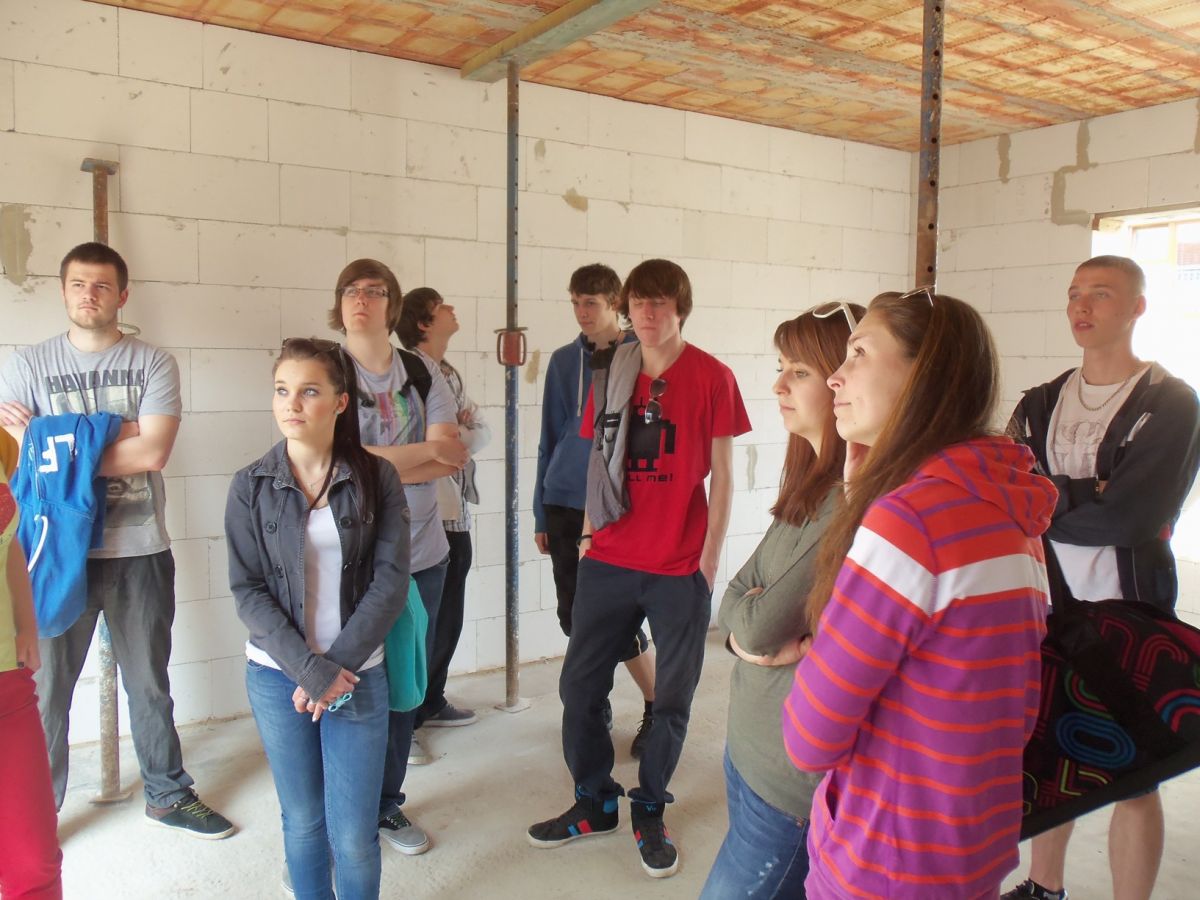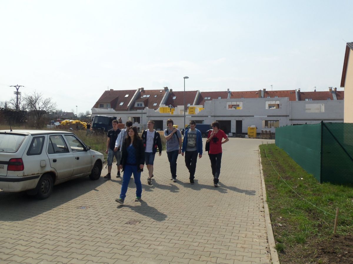Měli tak možnost vidět hrubou stavbu domů (zdivo z tvárnic Ytong, stropní konstrukci z keramických panelů Heluz, rozvody instalací, nosnou konstrukci schodiště, krov). Odborný výklad provedl jednatel stavební firmy. Na některých domech se ten den nanášela fasádní omítka, jiné byly těsně před předáním, v jedné řadě domů se již bydlelo. Exkurze se povedla, žáci si odnesli mnoho zajímavých a poučných poznatků. Exkurze se uskutečnila v rámci operačního programu OP VK.