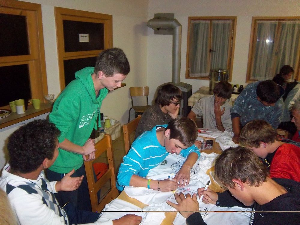 Hned po příjezdu do místa našeho pobytu se studenti ubytovali v chatkách. Protože nás čekal celodenní výlet krásnou přírodou Kokořínska, každý z nás dostal na cestu balíček. Počasí nám příliš nepřálo, ale šli jsme neohroženě a odvážně i v dešti. Odměnou nám byl rozchod ve Mšeně, kde naše cesta končila. Po večeři jsme se odebrali do jídelny, kde jsme kreslili na trička.
