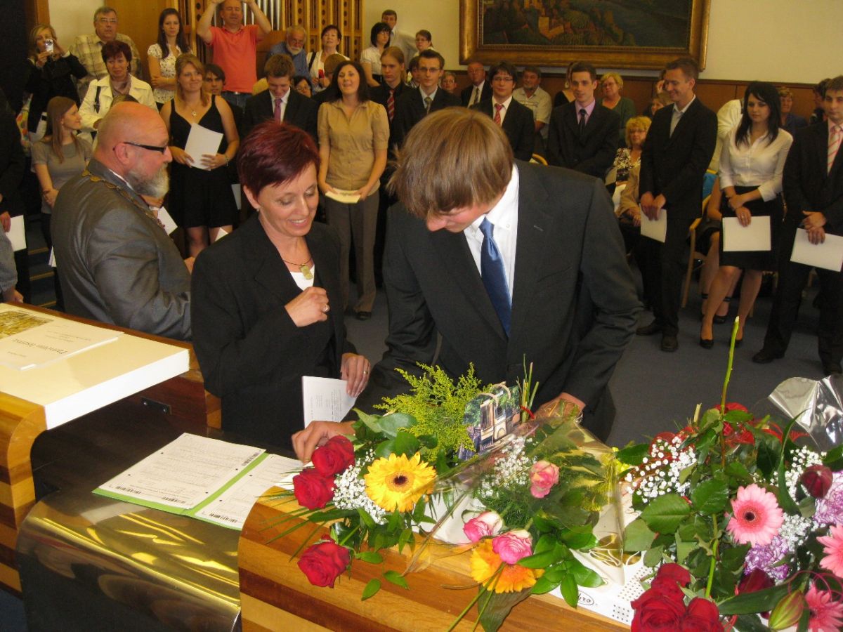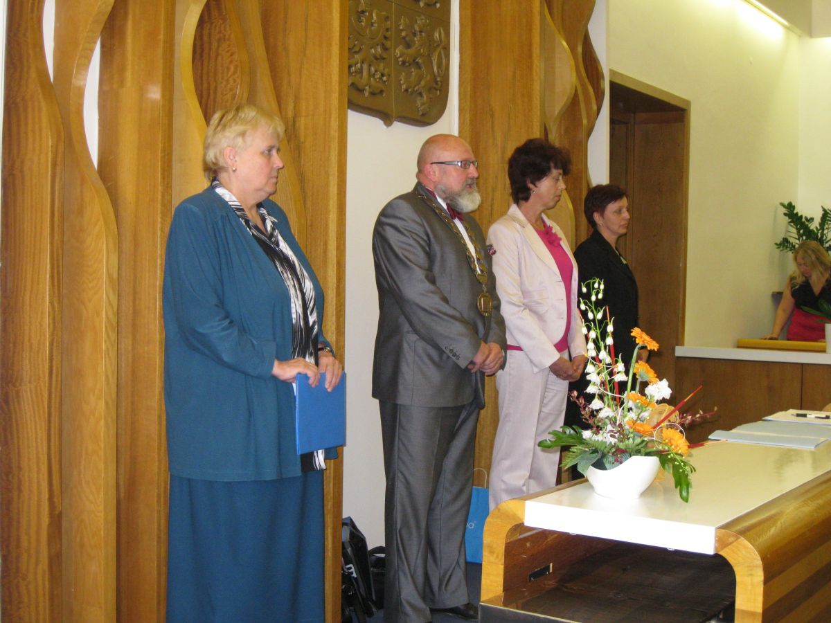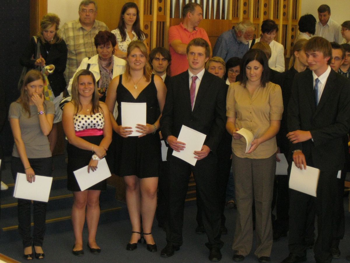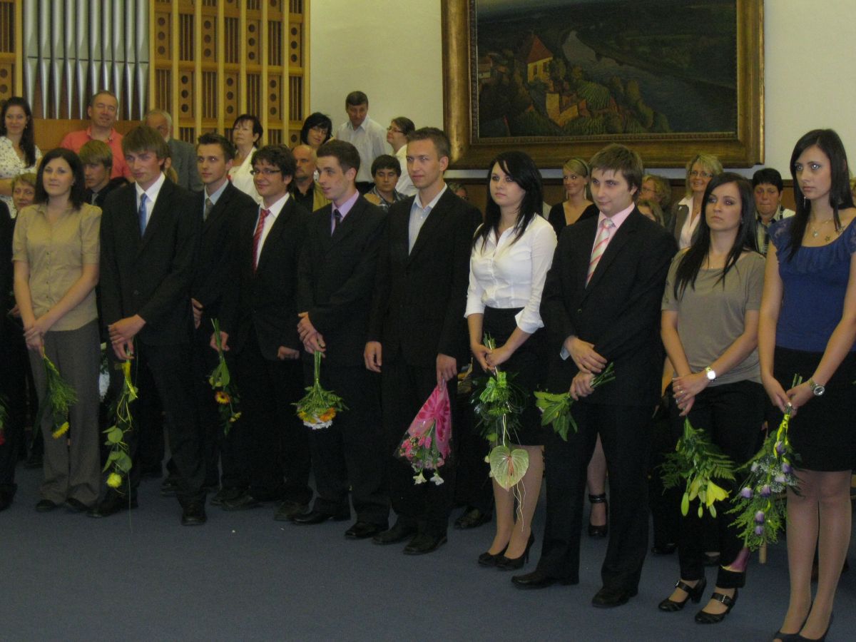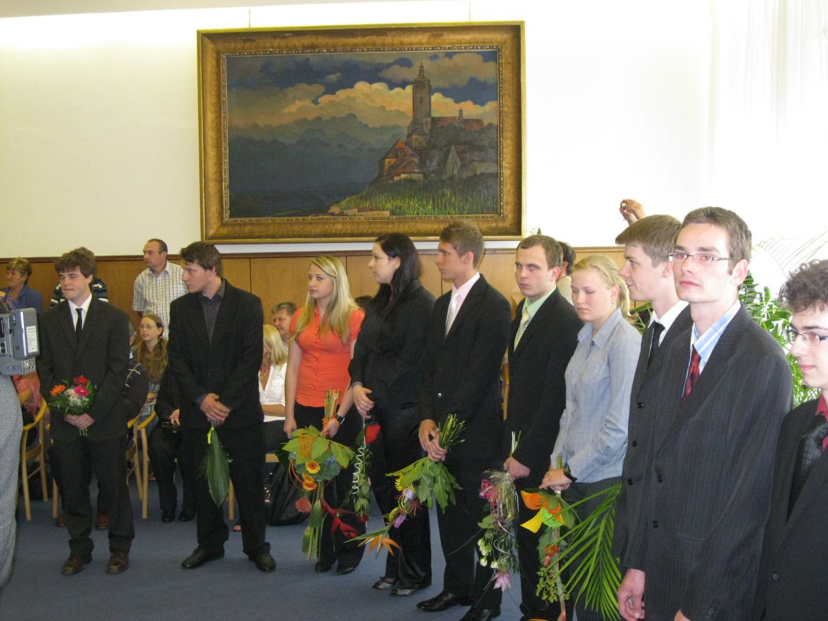 aby si zde převzali  maturitní vysvědčení. Této slavnostní chvíle se zúčastnili rodiče a ostatní příbuzní maturantů a učitelé. Po projevu pana starosty následovalo slavnostní předávání vysvědčení ředitelkou školy a třídními učitelkami.