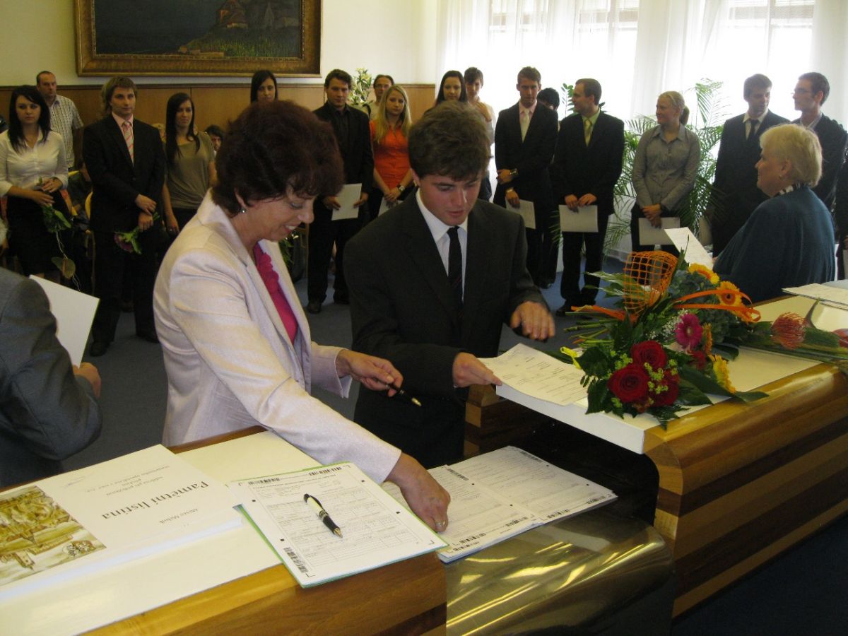 Slavnostní předávání maturitního vysvědčení na radnici v Mělníku