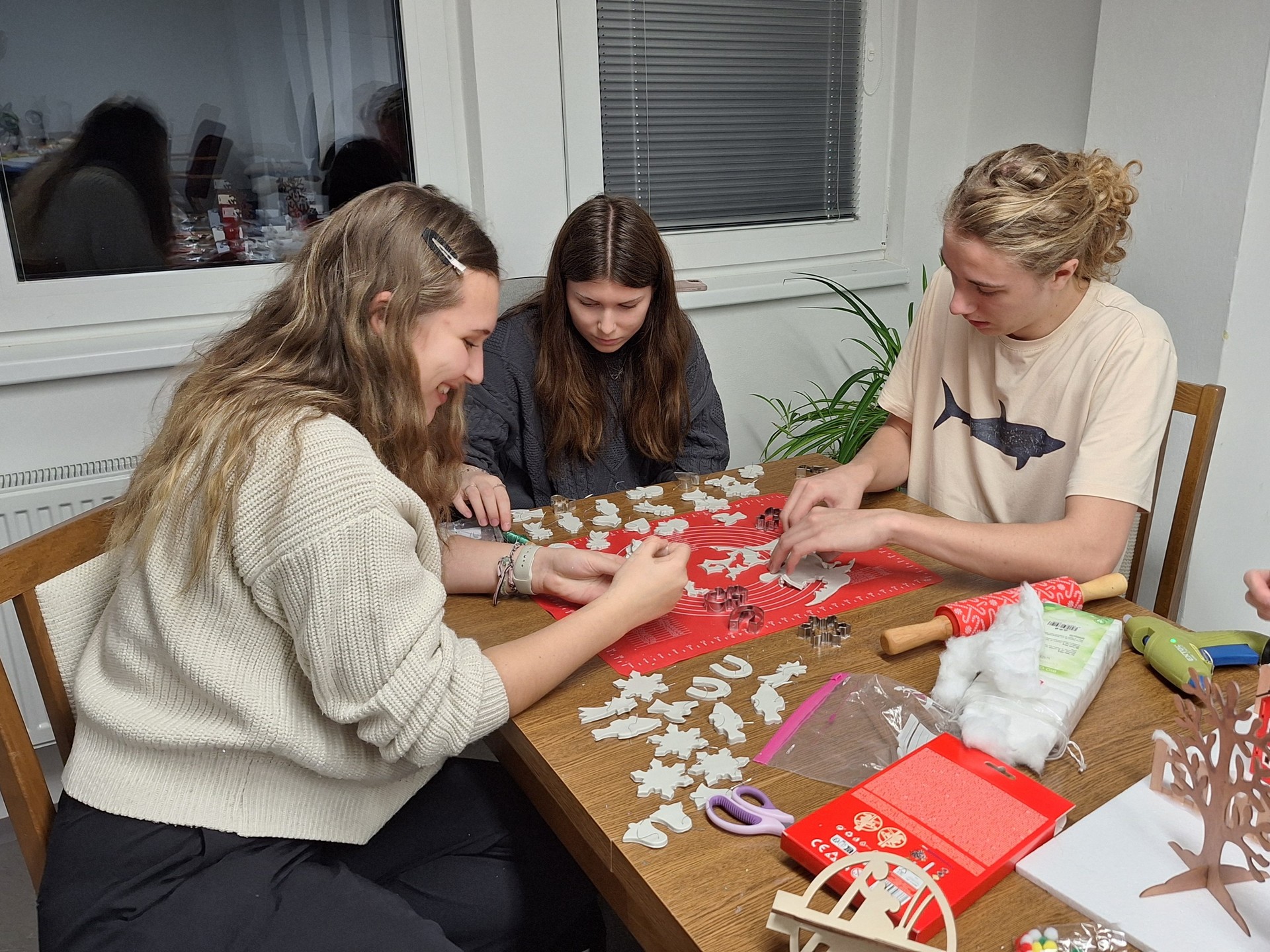 Všichni se těšíme na Vánoce a tak jsme si společně vánočně vyzdobili celý domov mládeže. Někdo dělal z větviček adventní věnec, někdo ho potom ozdobil, někdo jiný tvořil z keramické hmoty vánoční ozdoby, někdo svoji šikovnost uplatnil při výrobě vánočních svícnů a někdo dokonce dokázal stvořit vánočního skřítka!