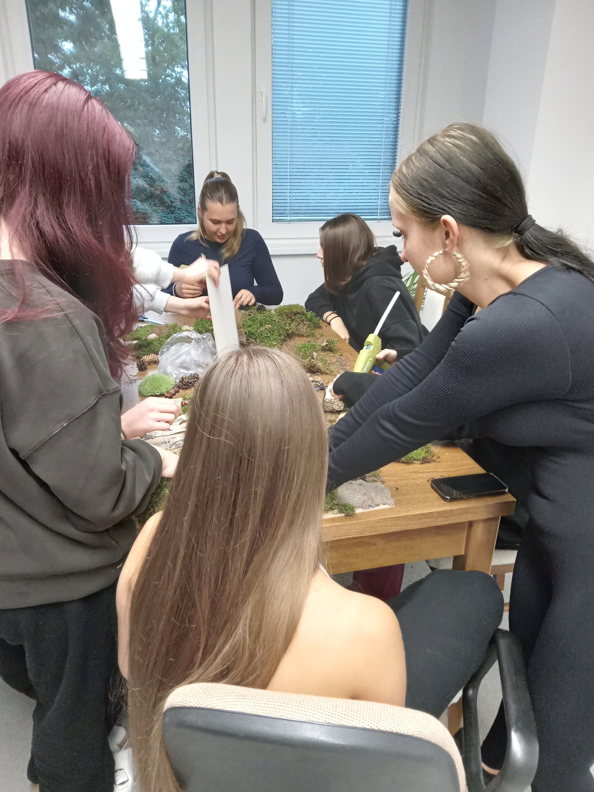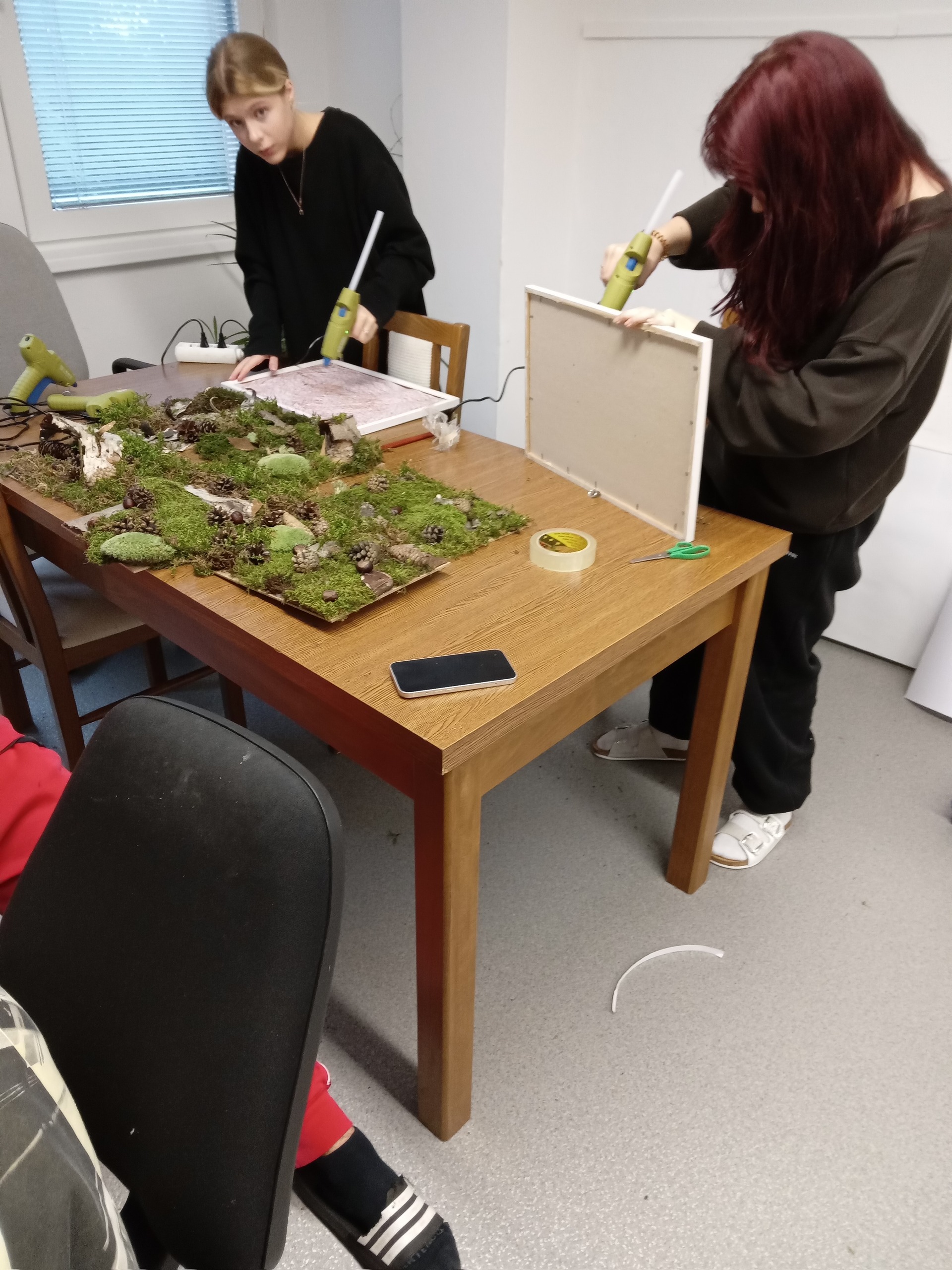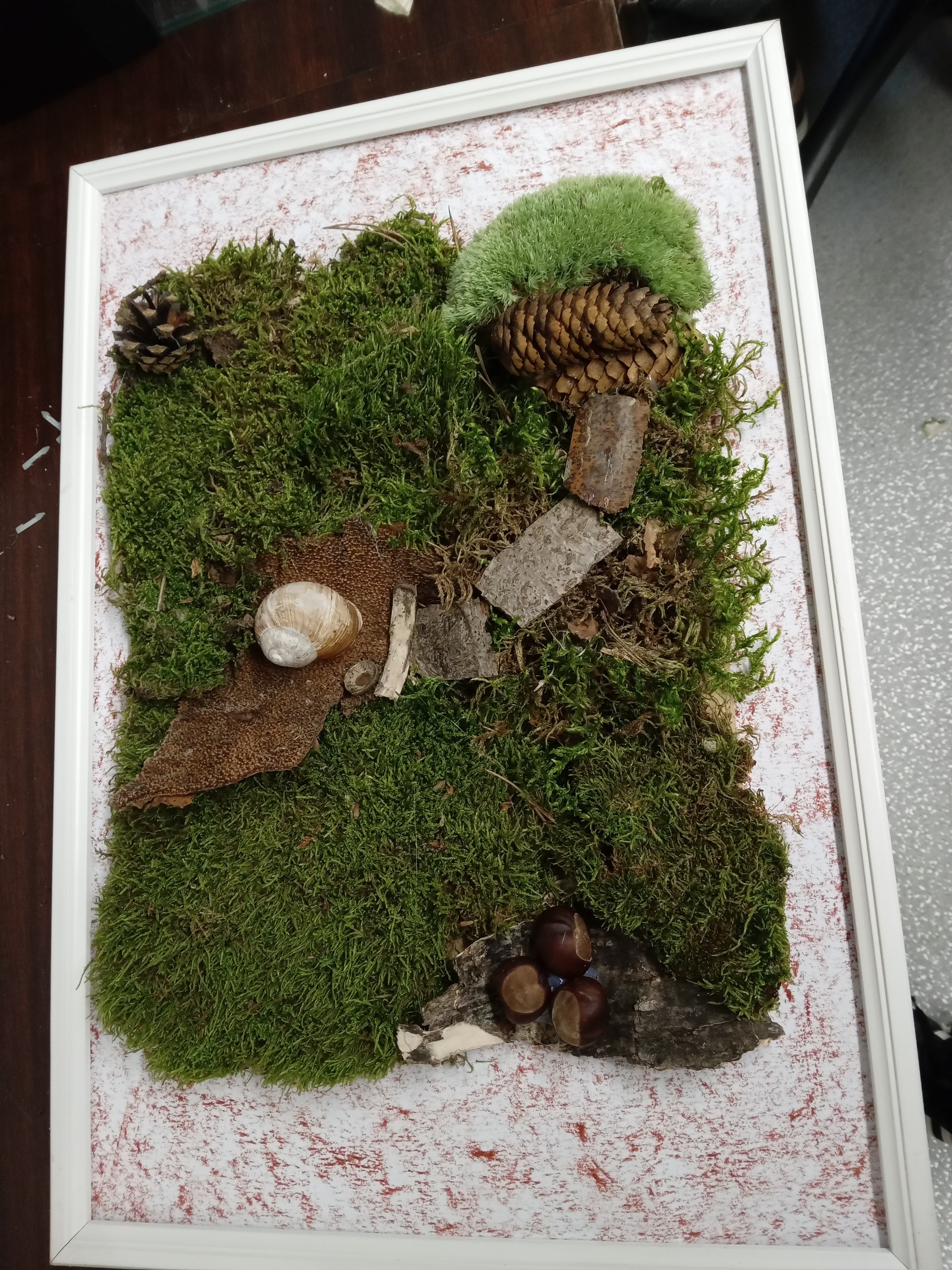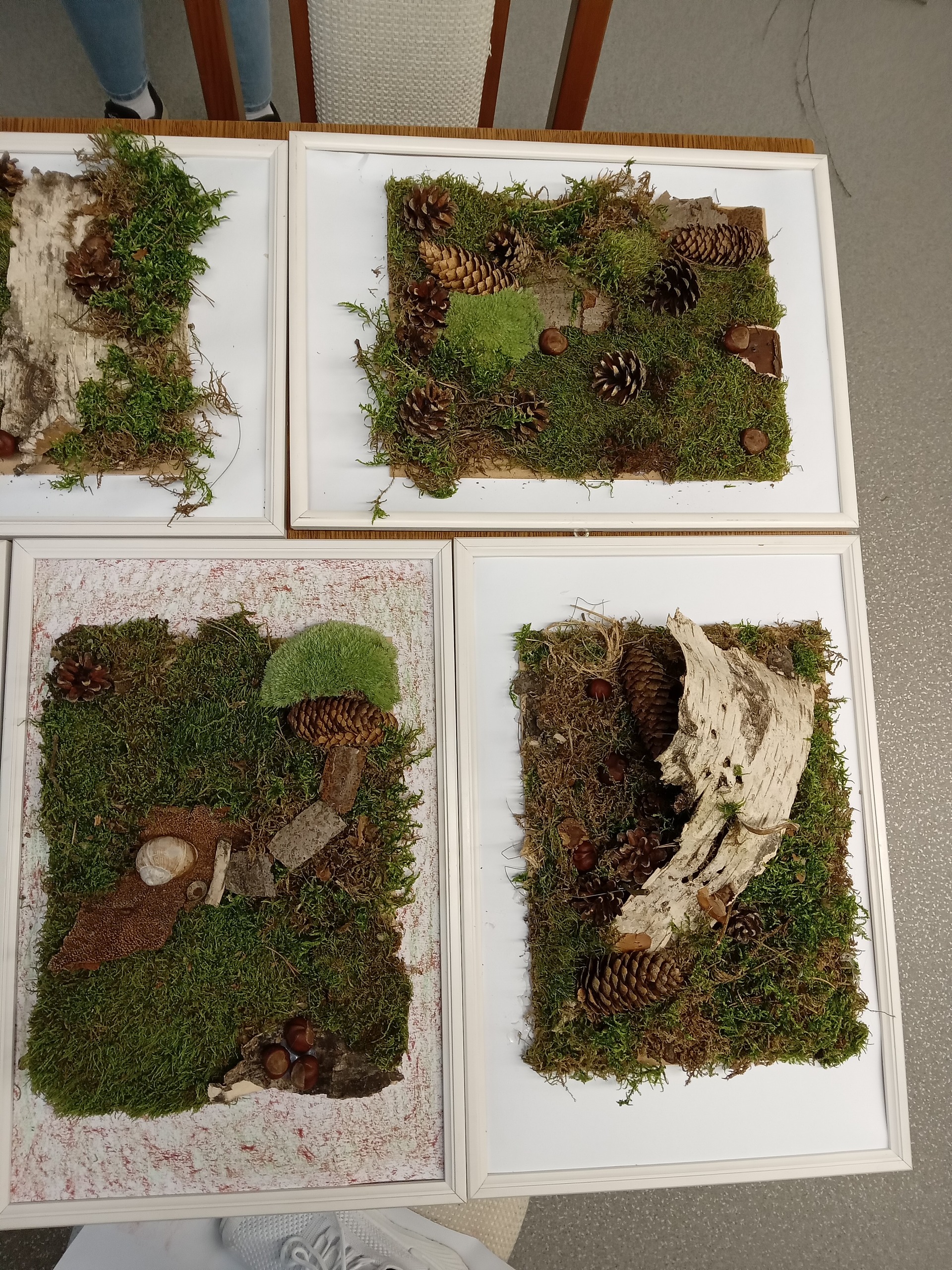 Čas strávený na vycházkách jsme využili ke sběru přírodních materiálů, z kterých jsme vyrobili obrázky k podzimní výzdobě domova mládeže.