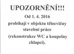 Upozornění – opravy v tělocvičně od 1.4.2016