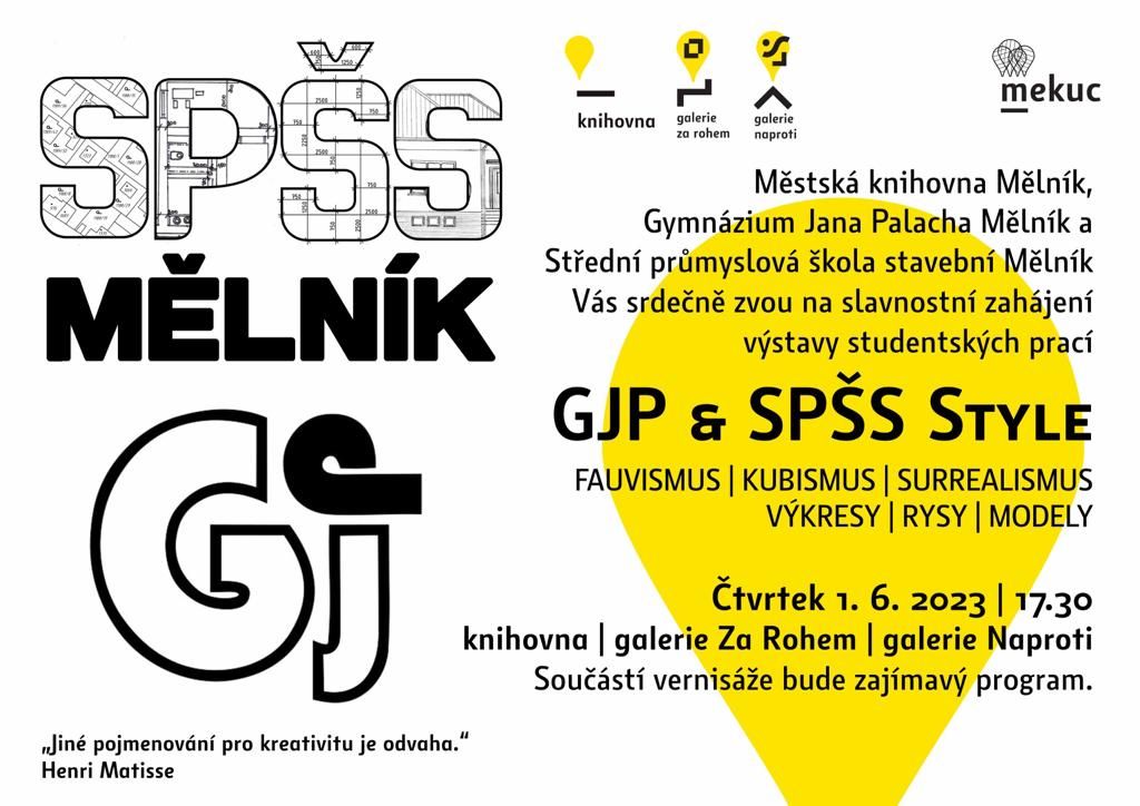 Žáci SPŠS a GJP Mělník pořádají ve spolupráci s městskou knihovnou v Mělníku společnou výstavu žákovských prací GJP & SPŠS STYLE.